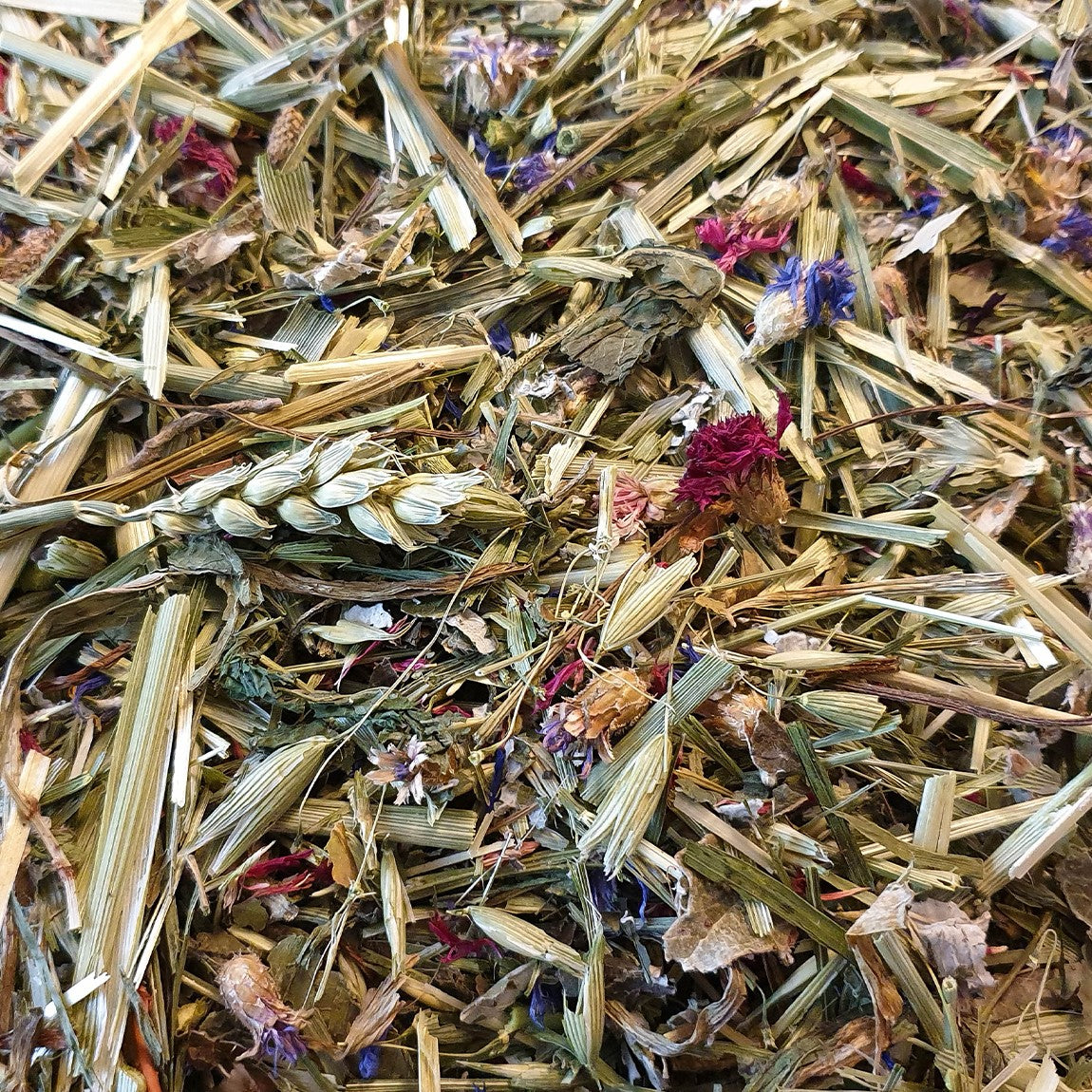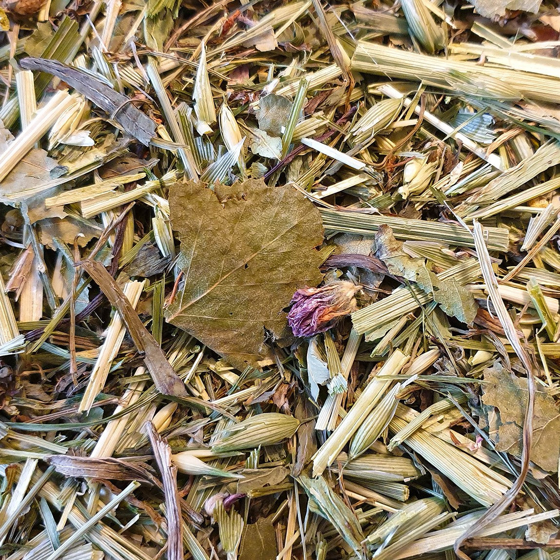 Grön Havre på Ax, Mynta (11%), Brännässleblad, Svartkämpar, Hallonblad (8%), Grön Vete på Ax, Blåklint ((Röd & Blå) 12%), Persilja, Dill.