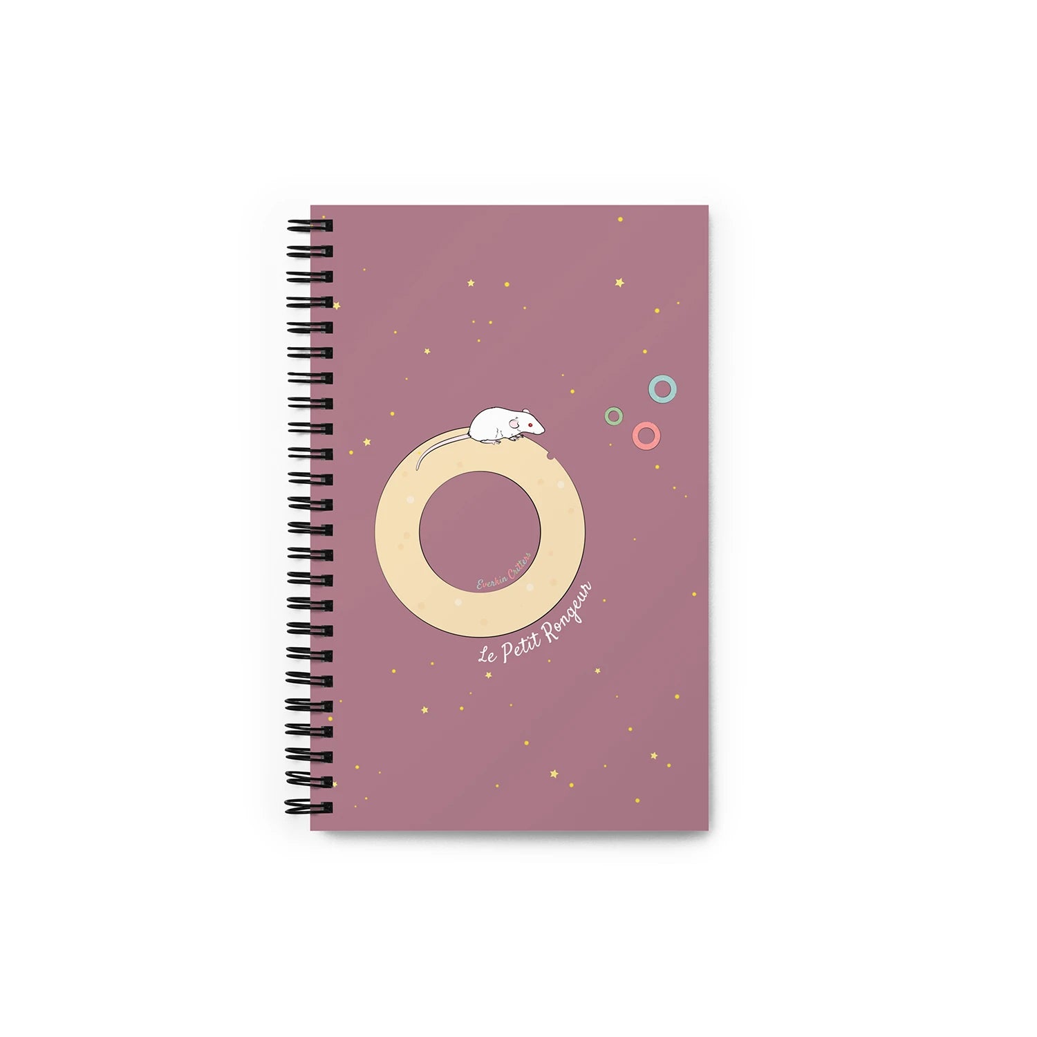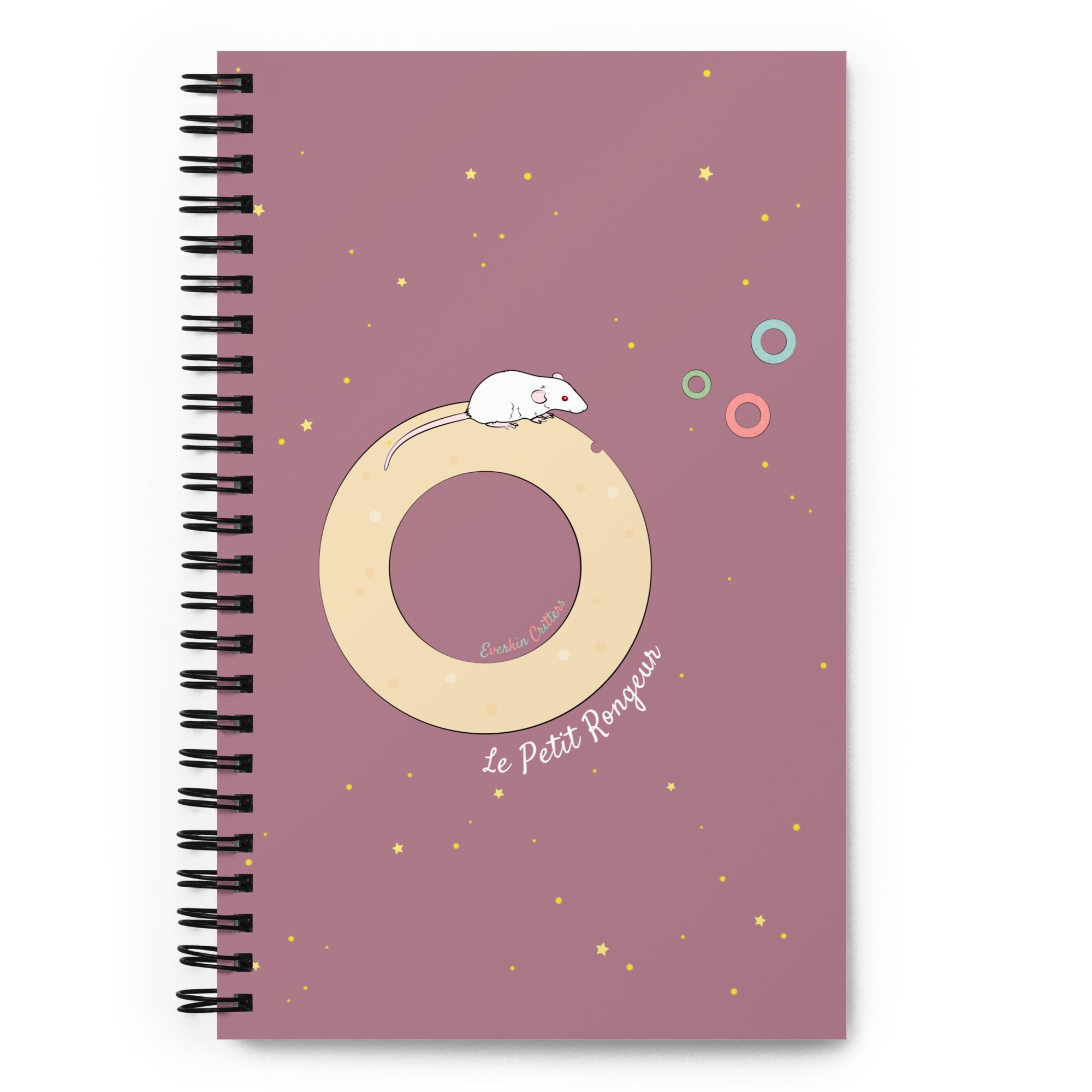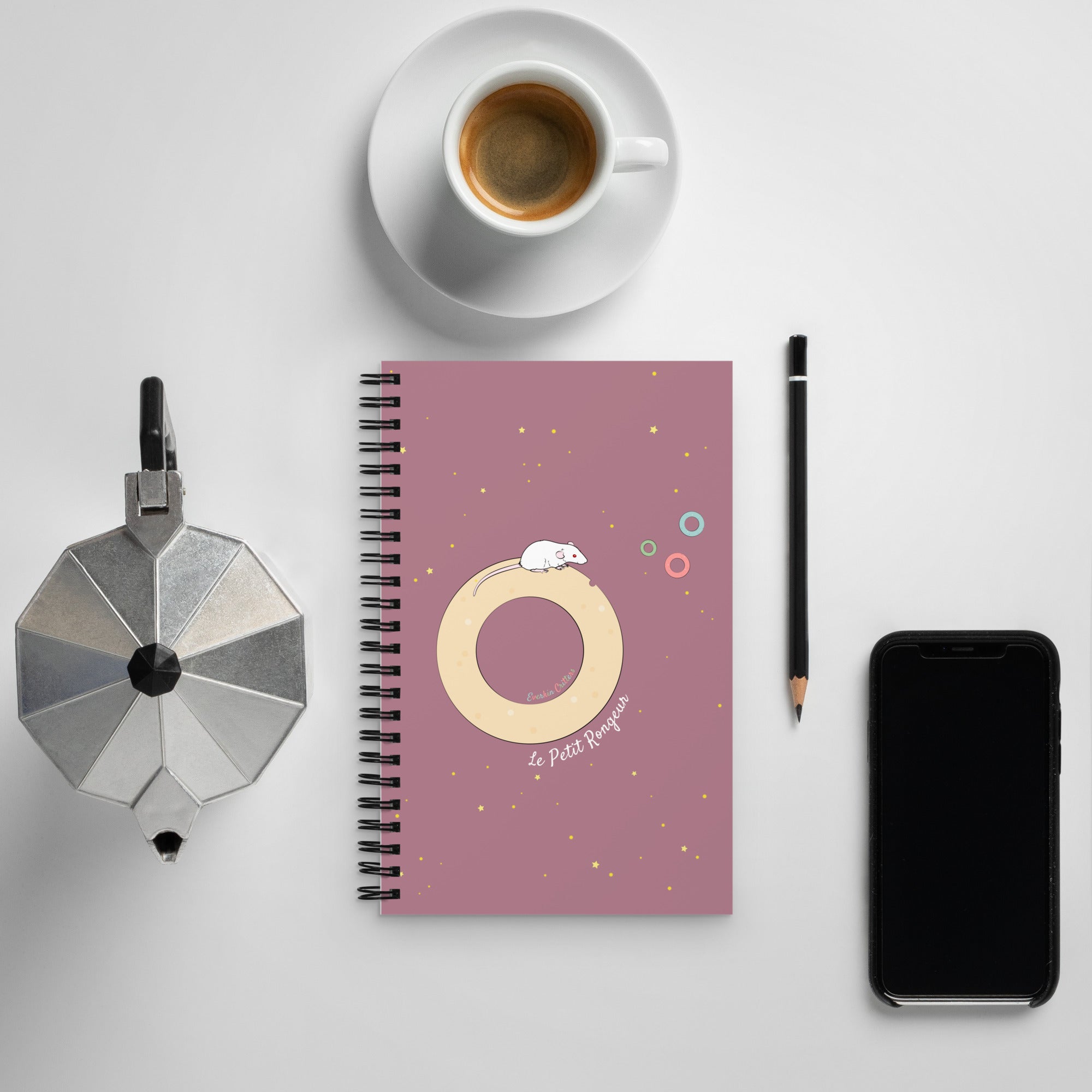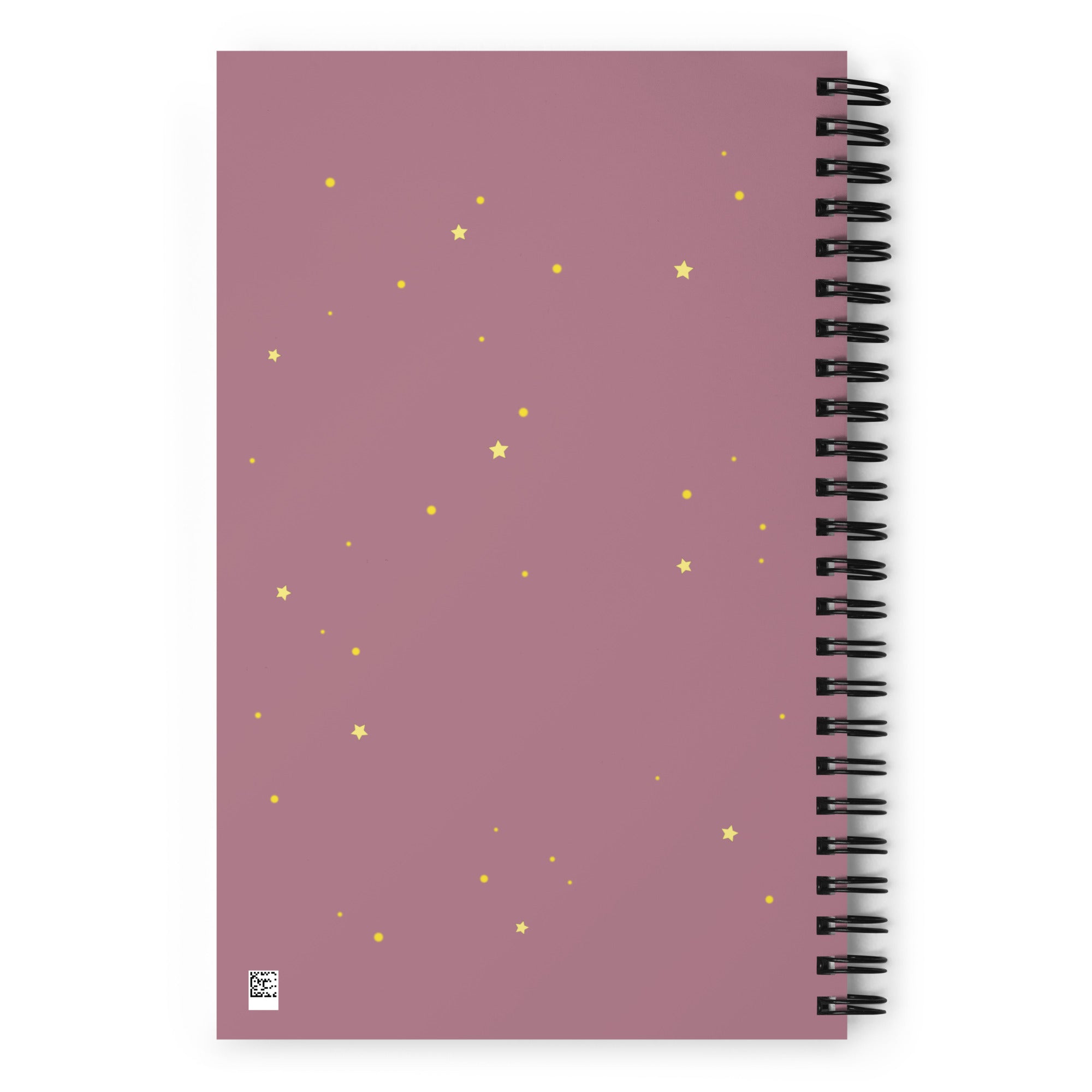 Skrivblock med spiralbindning, 140 prickade sidor och en rolig bild på framsidan.