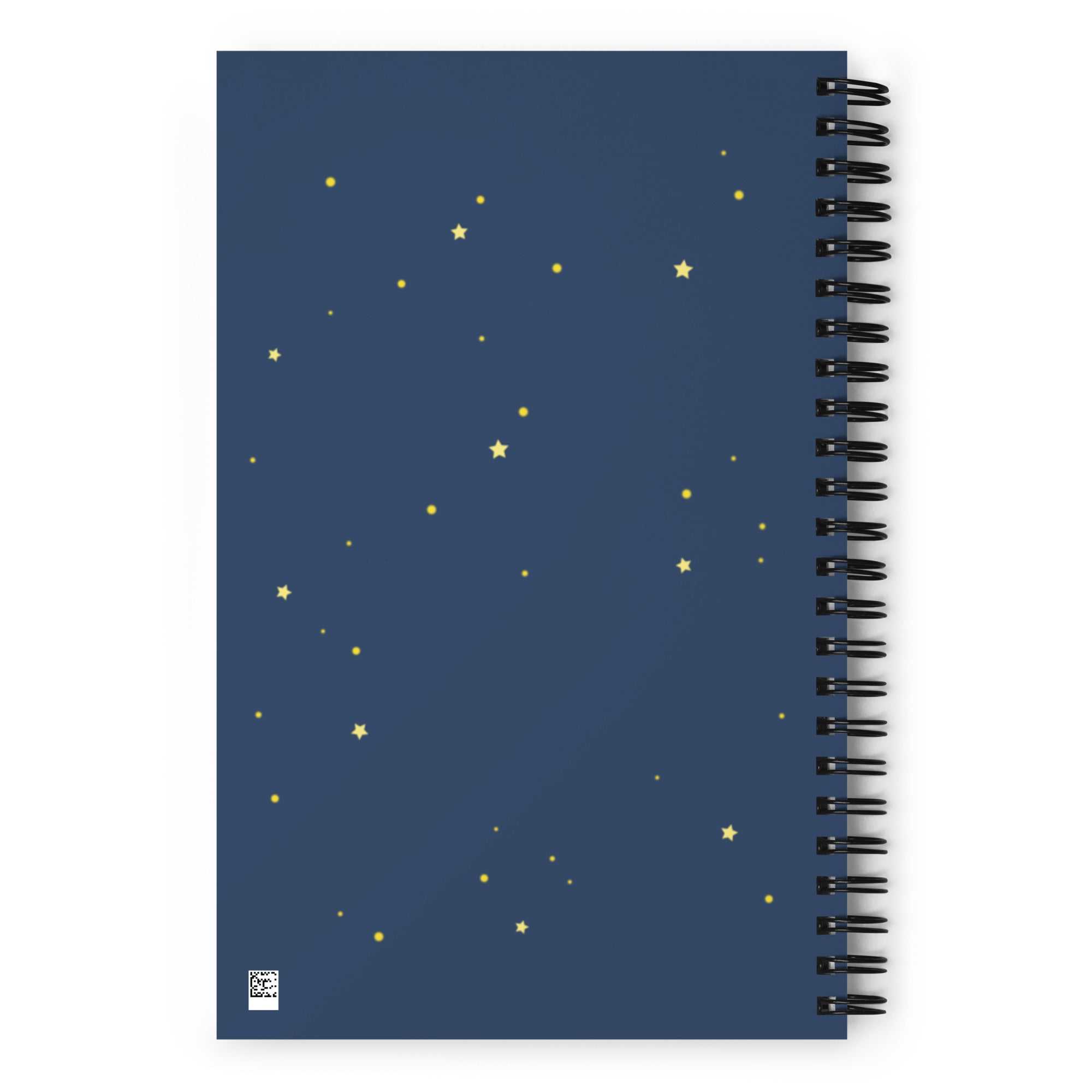 Skrivblock med spiralbindning, 140 prickade sidor och en fin bild på framsidan.